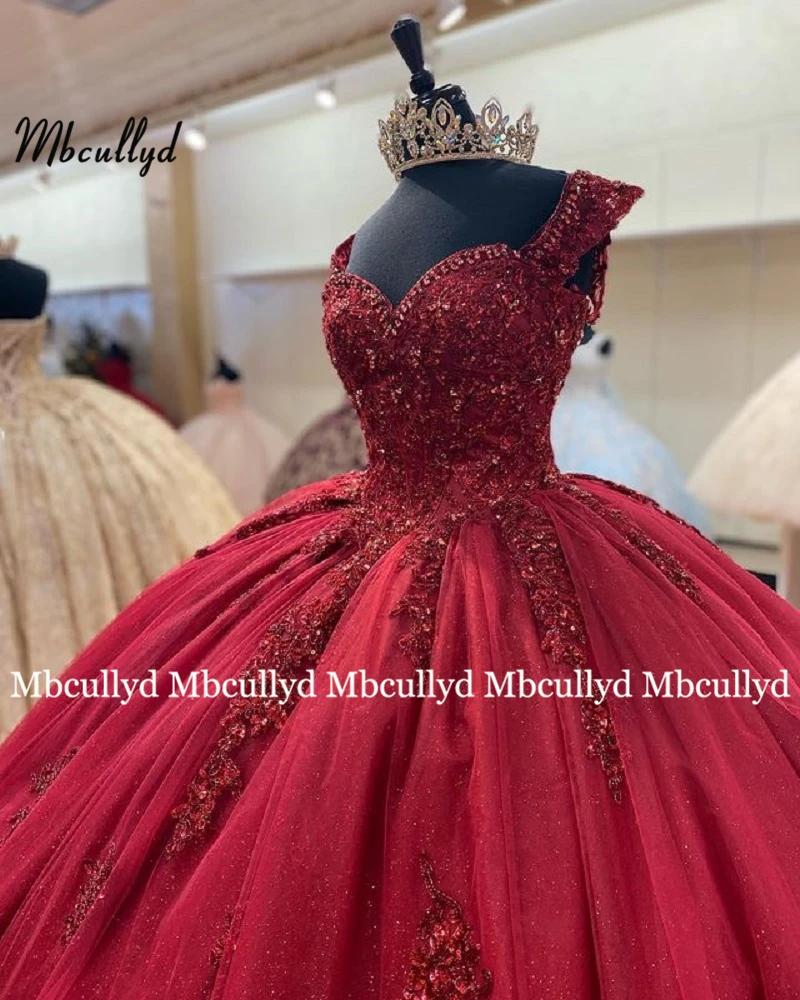 Burgundy Sparkly Quinceanera Dresses 2022 Long Sleeve Lace Up Corset Flowers Sequins Princess Sweet 15 Prom Ball Gown Vestidos De Fiesta From 153 51 Dhgate