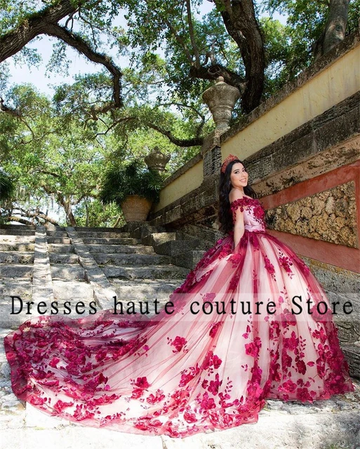 New Burgundy 3d Flower Quinceanera Dresses 2022 Off Shoulder Tulle Princess Ball Gown Sweet 16 Dress Vestidos De 15 Anos Quinceanera Dresses Aliexpress